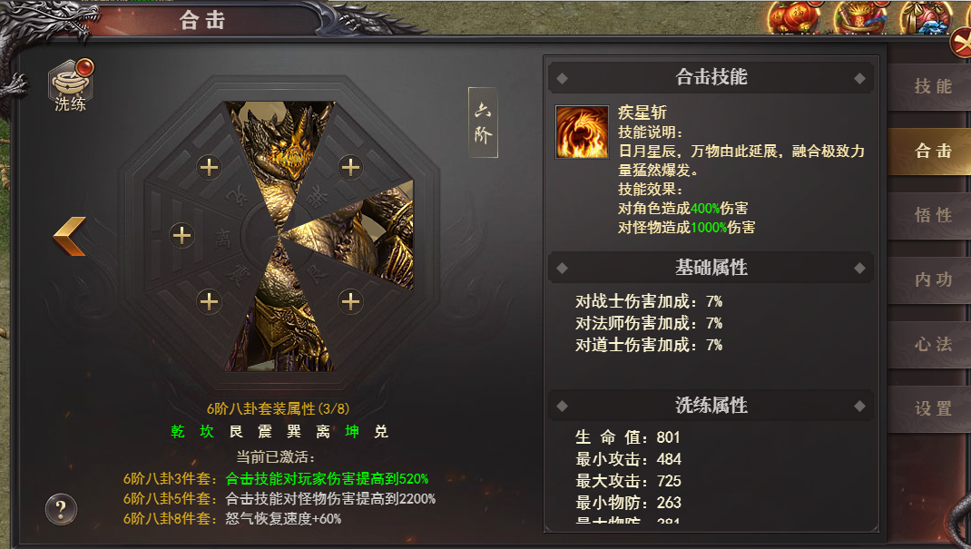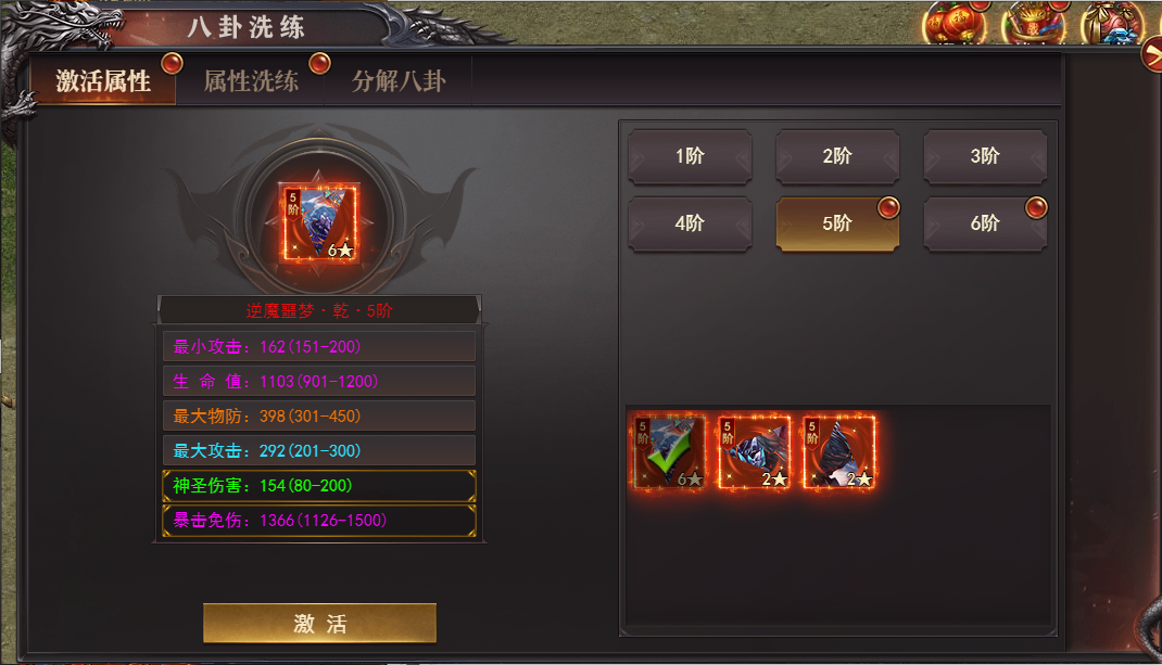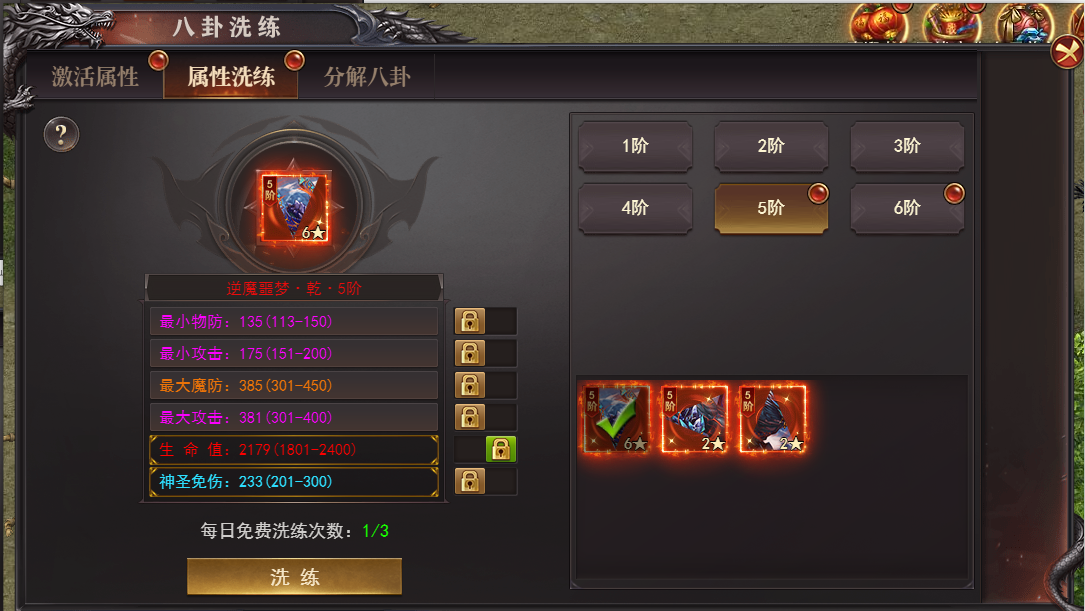2、 所有阶数的八卦都可进行洗练,洗练属性都可叠加